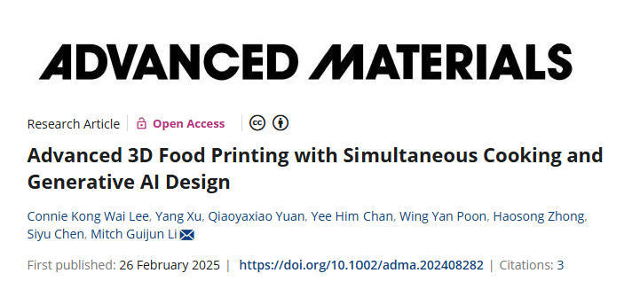 HKUST utilizes AI and synchronous cooking method to achieve "print and cook simultaneously" with 3D-printed food