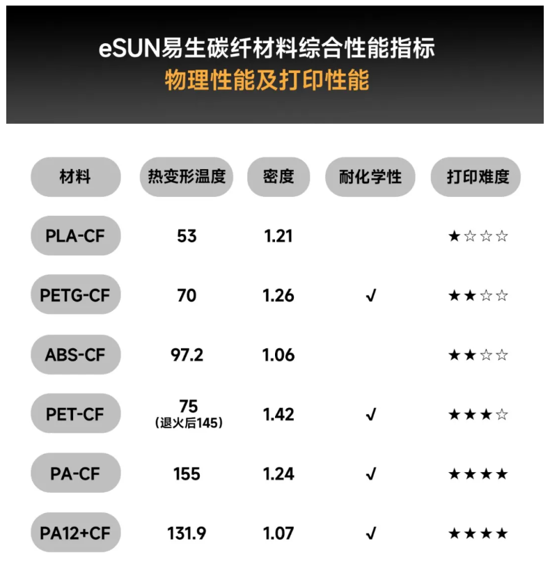 eSUN Carbon Fiber Series Material Selection Guide
