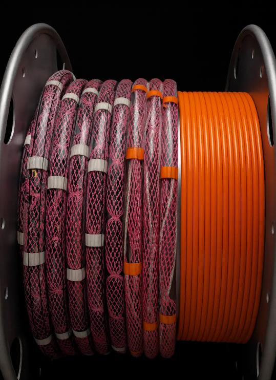 Another component the two companies worked on was the HydraSeis Multi-Channel Seismic Streamer. This is an in-water seismic data acquisition system. For this system, Powder Bed PA12 nylon spacers are used. These spacers are installed in an oil-and-sensor-filled cable, keeping its structural integrity and form intact. In the image above, you can see the orange and white spacers. The orange ones are there to let personnel know that this area could perhaps be stretched, whereas they should be more delicate with the areas that contain white spacers.