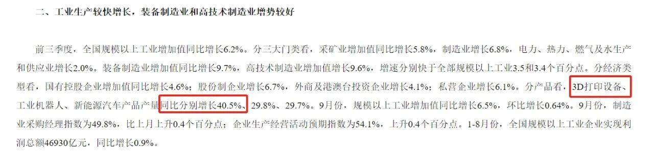 China's National Bureau of Statistics Reports: 3D Printer Output Increased 40.5% Year-on-Year in the First Three Quarters of 2025.