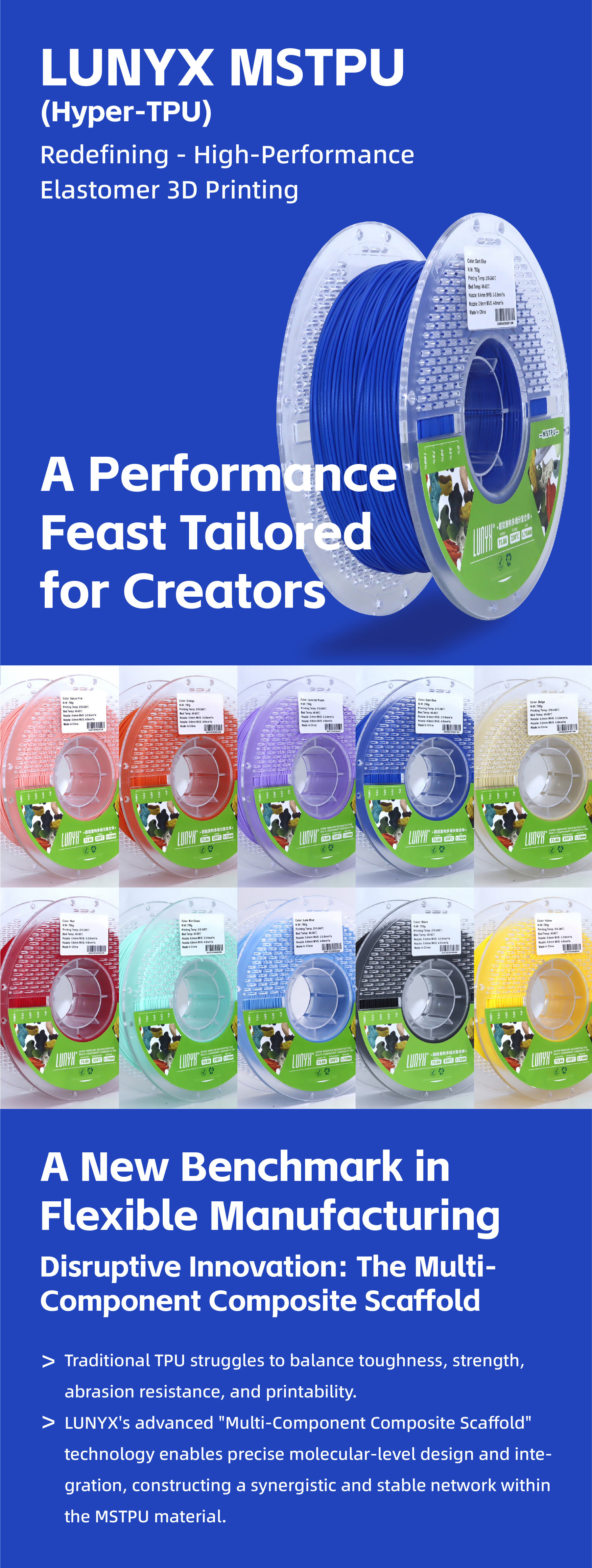 LUNYX High-Performance 3D Printing Filament TPU Elastic Filament - Moderate Flexibility, Balanced Softness and Rigidity, Professionally Adapted for Printing Shoes