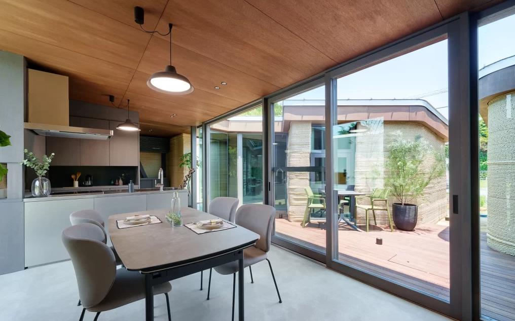 A notable example came from Japanese architecture studio Lib Work who completed a 100 sq m single-storey home in Kumamoto using large-scale 3D printing with a soil-based material rather than concrete. Developed with Arup and printed using equipment from WASP, the structure was extruded from a custom mix of earth, slaked lime and natural fibres, comprising about 65% soil and sand. Lib Work estimates the method reduces construction CO₂ emissions from roughly 45,000 kg to about 22,434 kg, while achieving Japan’s highest earthquake resistance rating.